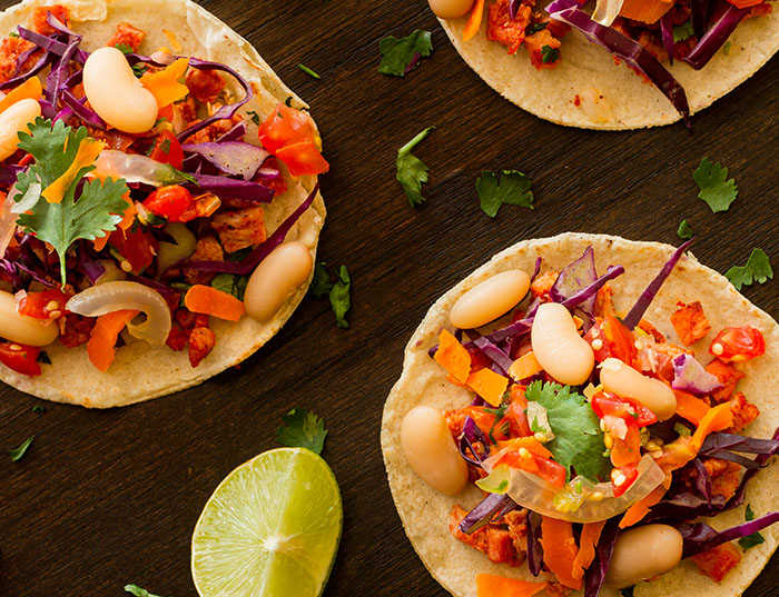Grilled marinated chicken served with rice, lettuce, mango, salsa and tortillas.